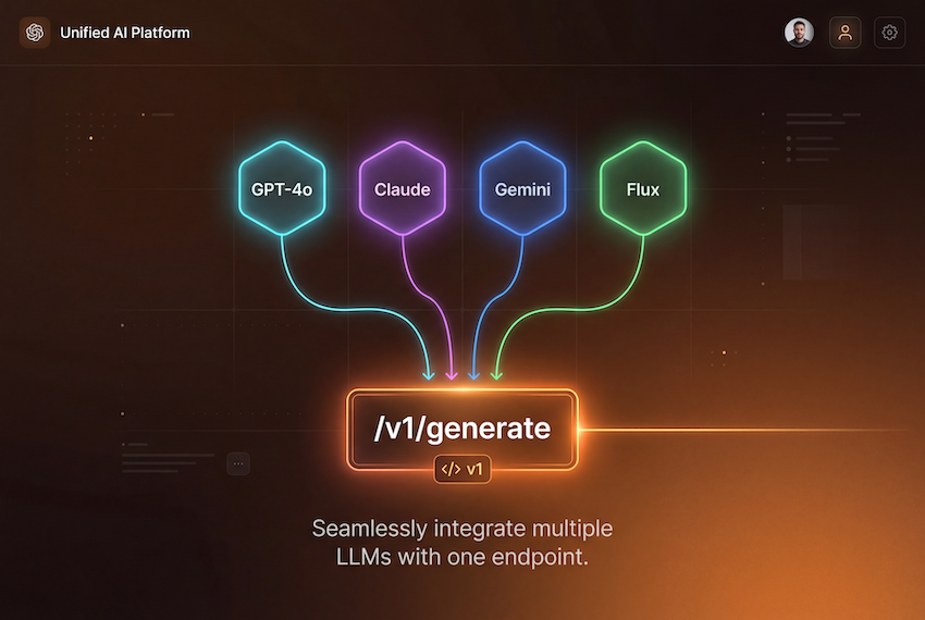 Access every major AI model through a single unified endpoint. Text, image, video, audio, and AI video rendering — no separate accounts needed.